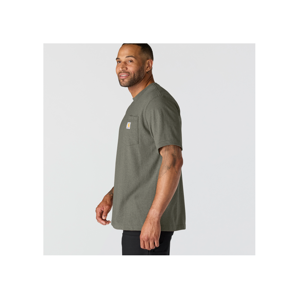 Nuestra camiseta con bolsillo debutó en 1992 y su diseño resistente al algodón y aspecto estilizado la convirtió rápidamente en la prenda preferida de los currantes que la llevaban. A pesar de que las décadas y las tendencias han ido y venido, la K87 sigue siendo un clásico con razón. Esta camiseta para hombre está fabricada con algodón grueso para esos duros días de trabajo. Cuenta con un corte holgado y un práctico bolsillo en el pecho para que puedas guardar lo que prefieras.