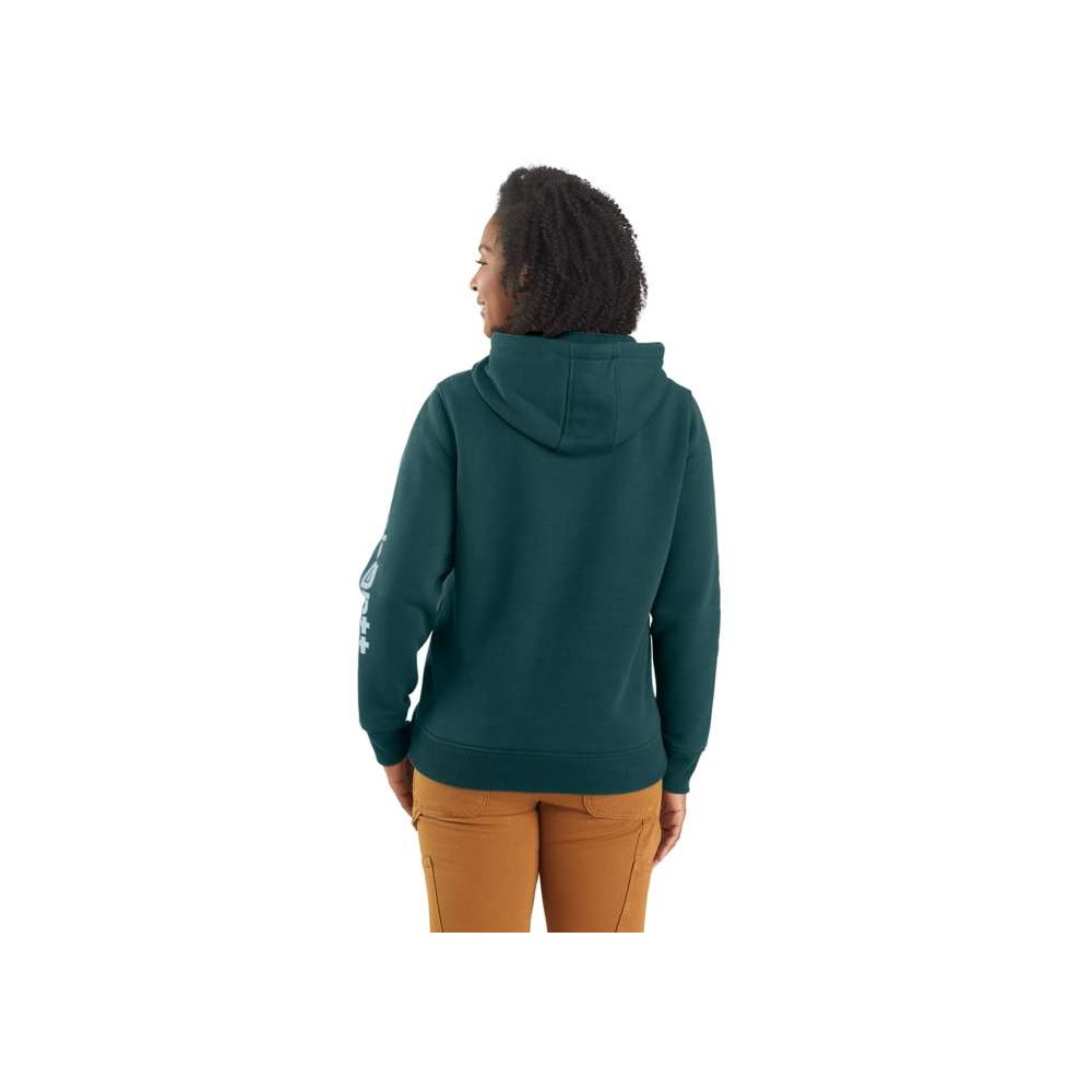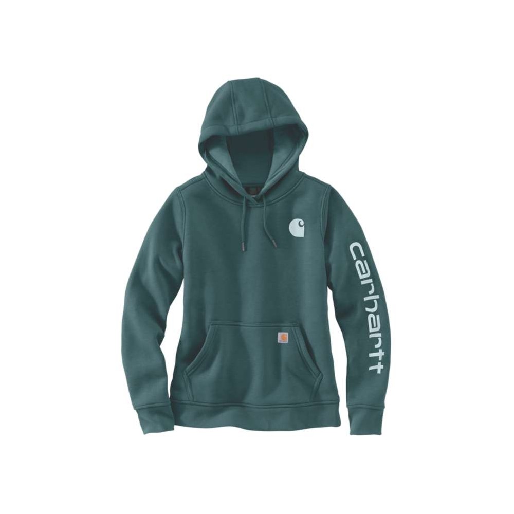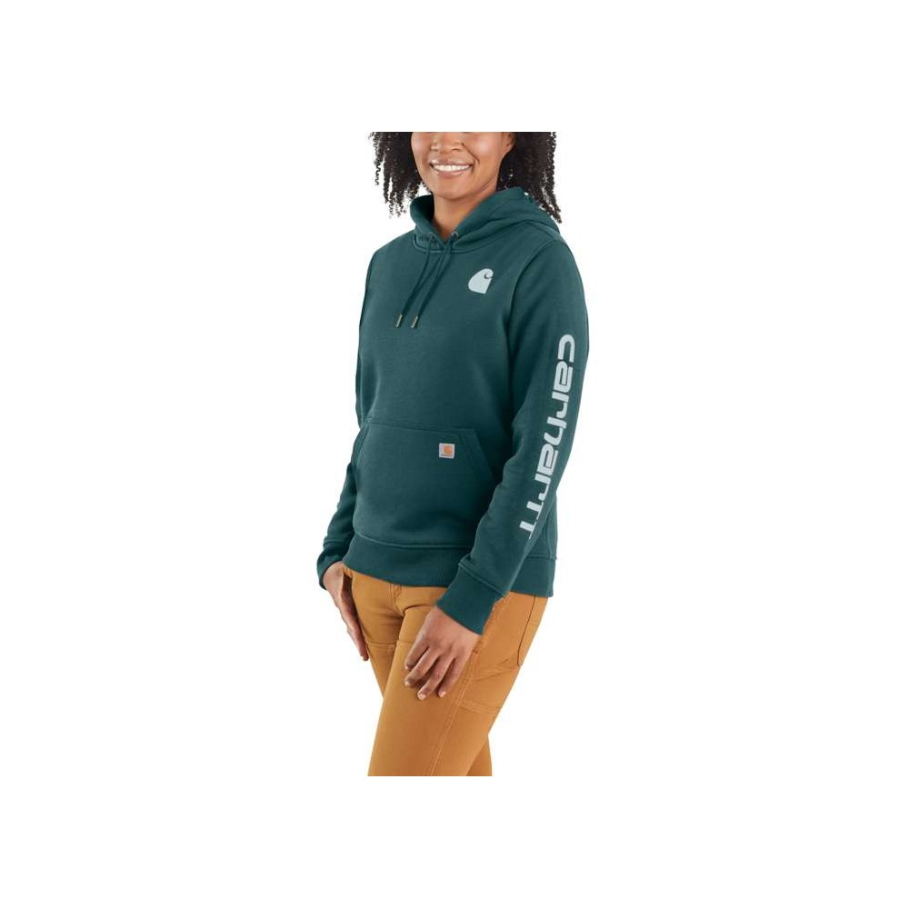 Las frías mañanas de invierno son mucho más llevaderas con esta cálida sudadera con capucha para mujer. Fabricada en un tejido polar pesado, esta sudadera cuenta con un acabado cepillado en el interior para proporcionarte un tacto aún más suave. Cuenta con un ajuste holgado para llevar sobre otras prendas e incluye el logotipo de Carhartt en la parte inferior de la manga.
