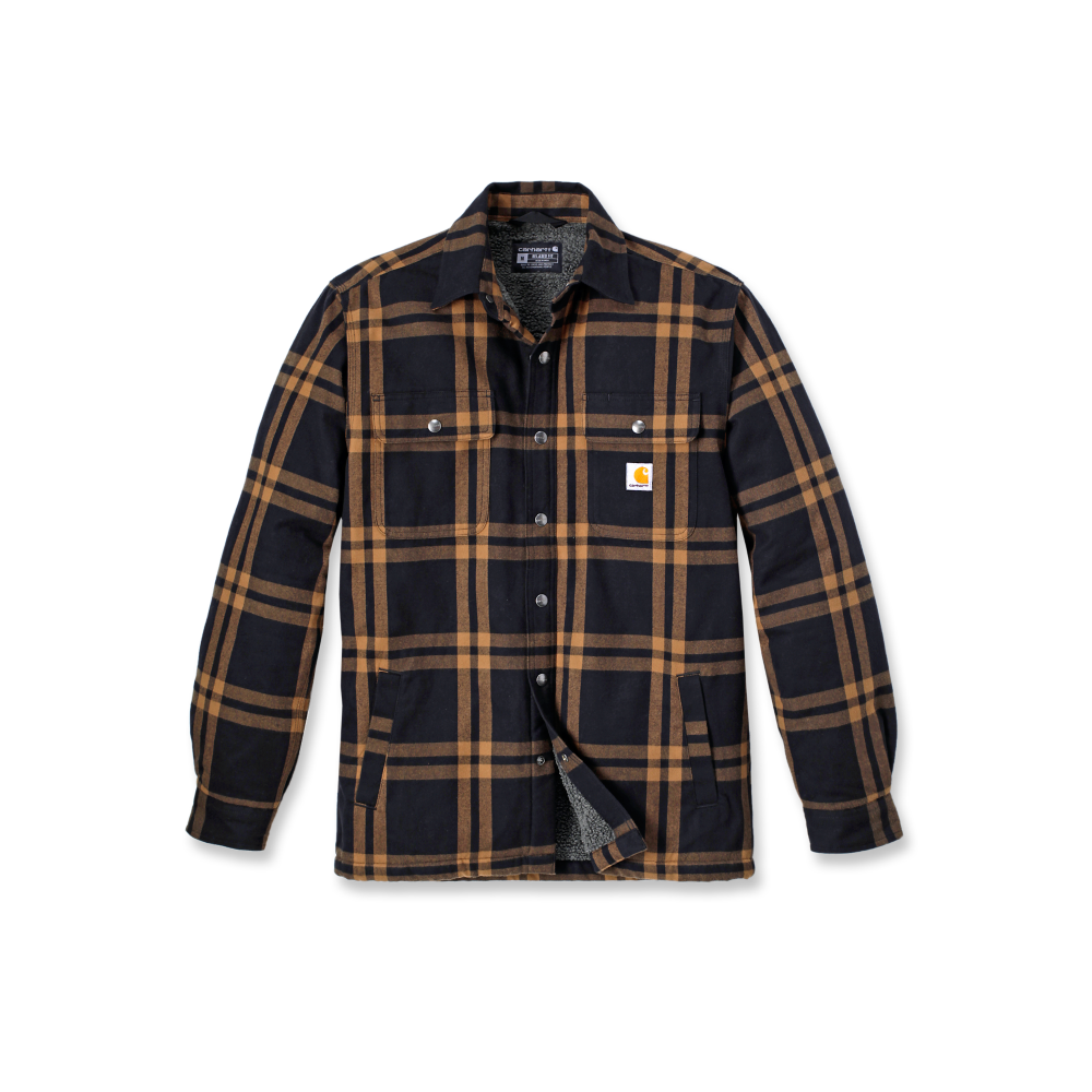 Cuando necesites una capa resistente, ponte esta camisa jac de Carhartt para hombre. De franela gruesa, con un cálido forro de sherpa y corte holgado. Con costuras de triple pespunte para mayor resistencia y múltiples bolsillos para guardar lo esencial.