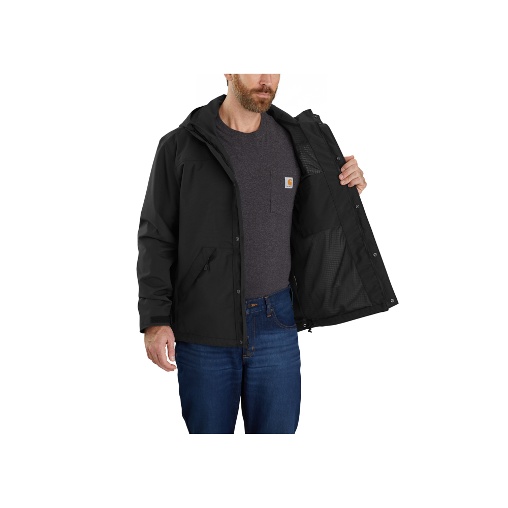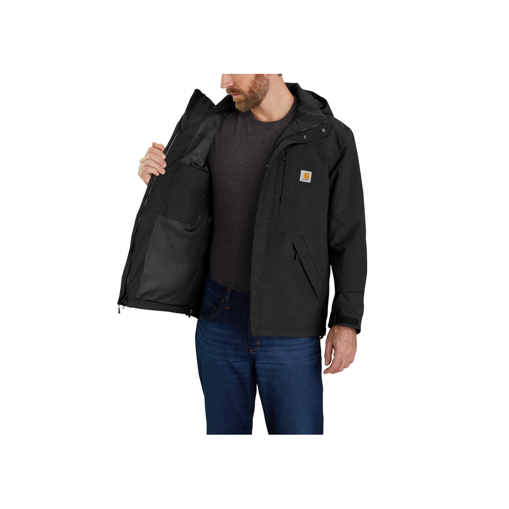 Podrás seguir trabajando incluso bajo tormentas y chubascos. Esta chaqueta para hombre está hecha para resistir las inclemencias del tiempo, para que puedas seguir haciendo tu trabajo. Impermeable y transpirable gracias a Storm Defender™, no deja pasar el agua de lluvia pero deja escapar el sudor. La capucha desmontable y el bajo ajustable proporcionan una cobertura total. Su corte holgado ofrece mucho espacio para vestirse a capas.