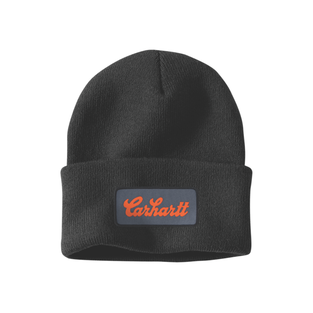 KNIT CUFFED SCRIPT PATCH BEANIE