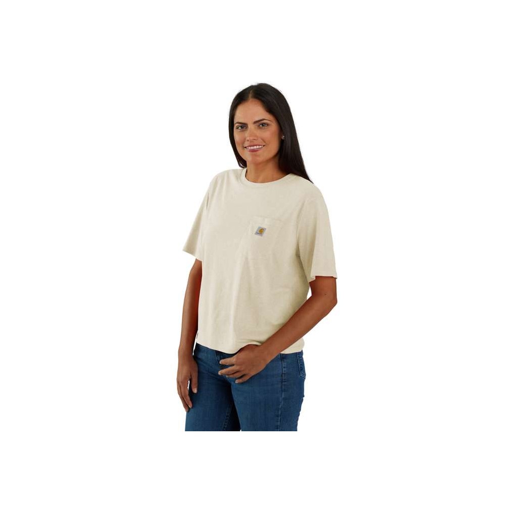 Esta camiseta Carhartt de mujer, de cuello redondo con un corte holgado para cualquier día de la semana, es de las que te pondrás una y otra vez. Confeccionada con una ligera mezcla de algodón, es perfecta para los meses más cálidos o como prenda de abrigo para el frío.