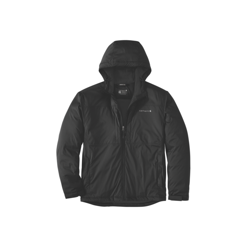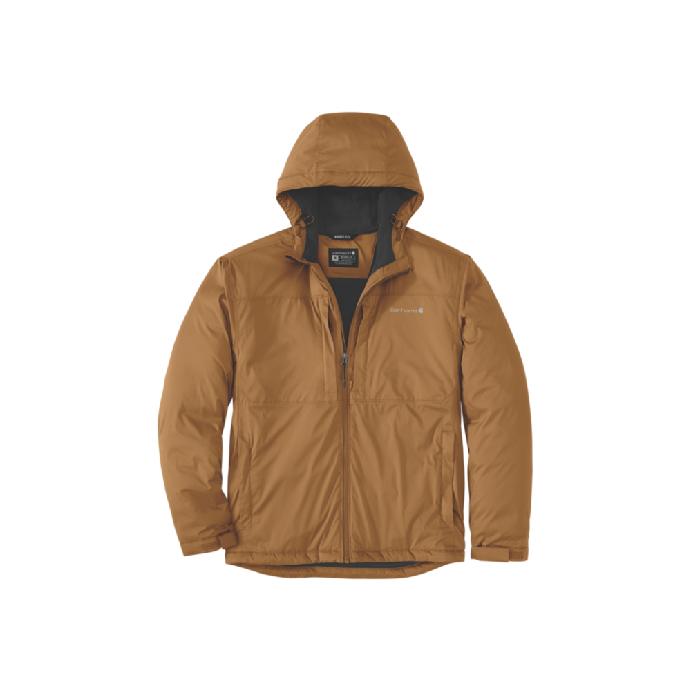 Corte relajado · Rain Defender™ - Acabado repelente al agua duradero · Rugged Flex™ - Permite mayor libertad de movimiento · Carhartt Force™ - Tecnología FastDry™ diseñada para combatir el sudor y secar rápido, manteniéndote fresco y cómodo 24/7 · Wind Fighter™ - Resistente al viento · Capucha de tres piezas unida con borde ajustable y cordón oculto · Manga larga · Dos bolsillos en el pecho con cierre de cremallera · Dos bolsillos frontales inferiores con cierre de cremallera · Bolsillo plegable en el lado izquierdo del usuario · Dos bolsillos interiores: uno con cremallera y otro con cierre de velcro · Cremallera frontal de largo completo con protector de barbilla · Puños parcialmente elásticos con cierre de velcro para ajuste adicional · Dobladillo trasero alargado para mayor cobertura con cordón ajustable · Estampado del “Logo Signature” de Carhartt en el pecho · Paneles elásticos en los costados y bajo los brazos para movilidad · 1,8 oz/yd² - 62 gsm · Nylon DWR · Forro interior acolchado de nylon; Aislado para mantener el calor · 100% Nylon